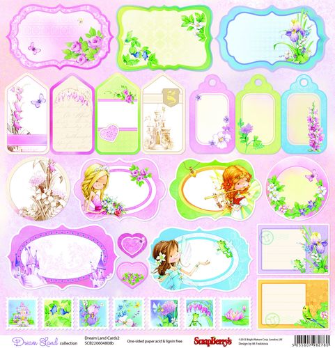 Бумага для скрапбукинга 30,5х30,5 см 190 гр/м односторон Волшебная страна карточки 2,
