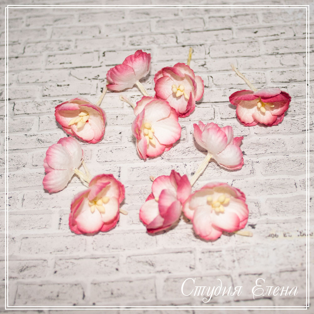 цветы вишни красно-белые 2,5 см, 10 шт